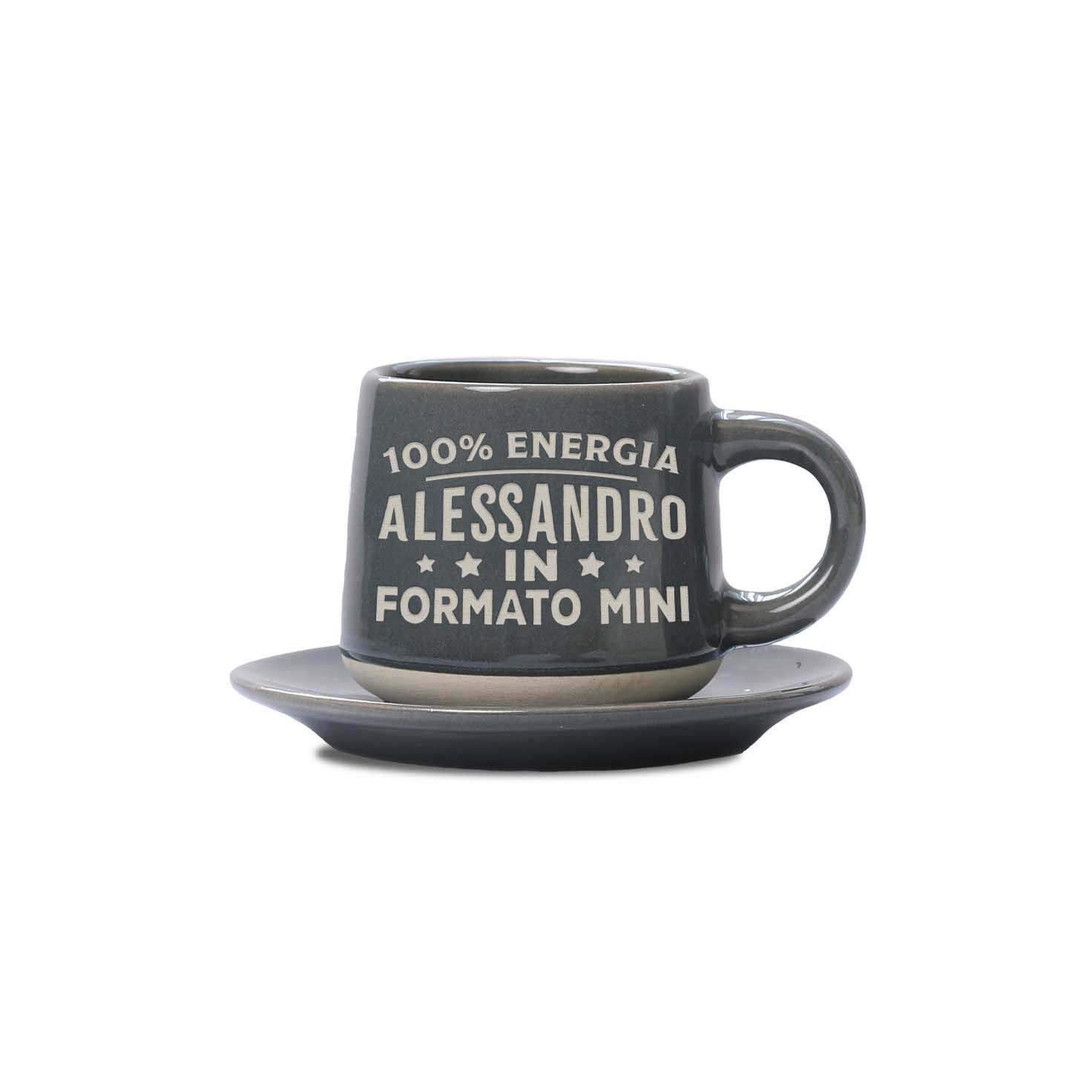 Tazzina da caffè Alessandro perfetta come idea regalo personalizzata e originale. Tazzina espresso con nome Alessandro ideale per rendere unica ogni pausa caffè. Il piattino è in vendita singolarmente.
