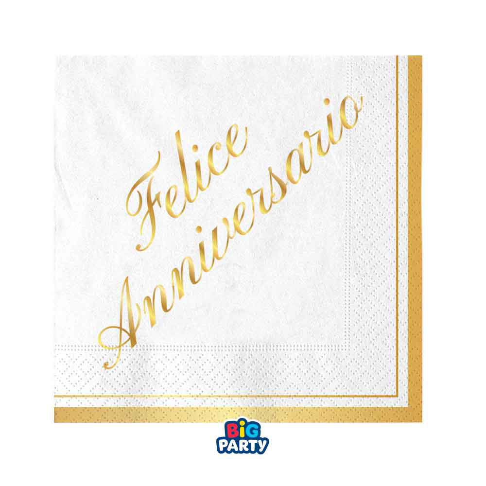 Tovaglioli 25x25 cm Felice Anniversario 16 pezzi