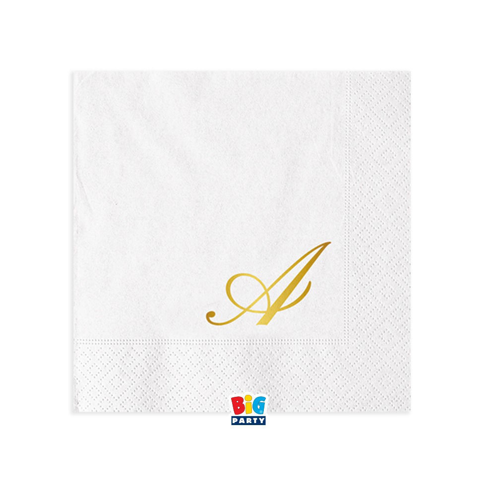 Tovaglioli 25x25 cm Lettera A 16 pezzi - Tovaglioli 2 veli 25x25 cm con stampa oro a caldo, eleganti e ideali per feste ed eventi speciali.