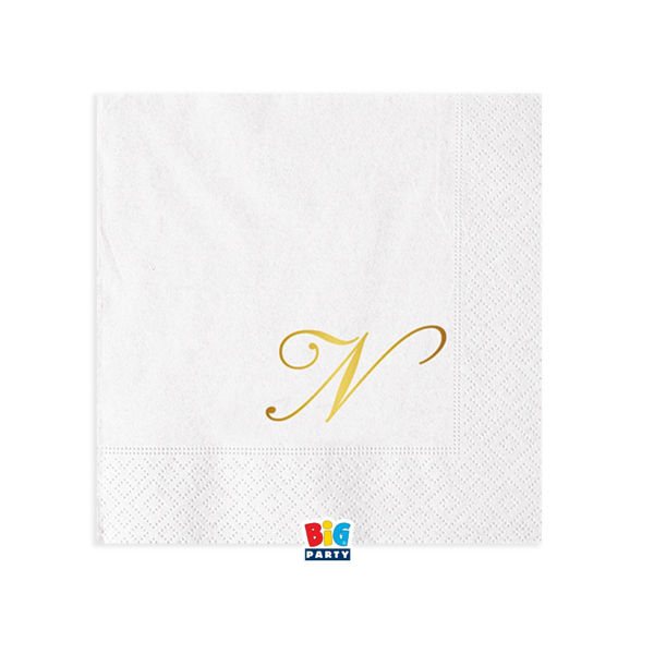 Tovaglioli 25x25 cm Lettera N 16 pezzi è una confezione di tovaglioli 2 veli firmati Big Party. Ogni tovagliolo misura 12,5x12,5 cm da chiuso (25x25 cm da aperto) ed è impreziosito da una lettera dell'alfabeto stampata a caldo in color oro. Perfetti per decorare la tavola in occasioni speciali come battesimi, compleanni, comunioni, matrimoni o eventi eleganti. Aggiungono un tocco raffinato e personalizzato a ogni festa.