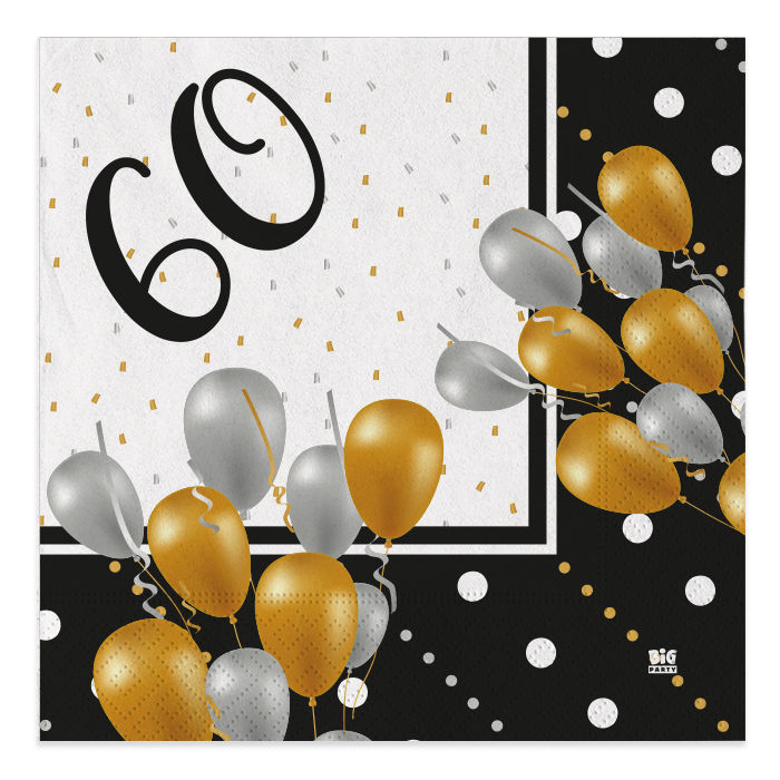 Tovaglioli 33x33 cm 60 anni Prestige 20 pezzi. Realizza la festa del tuo Sessantesimo Compleanno in modo divertente e colorato per un augurio partycolare. Un' ottima soluzione per gli eventi speciali.