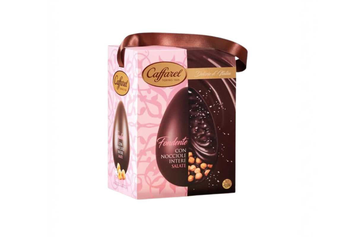 Uovo di Pasqua Caffarel Delizie d’Italia fondente con nocciole salate da 530 g, dal gusto intenso e croccante.