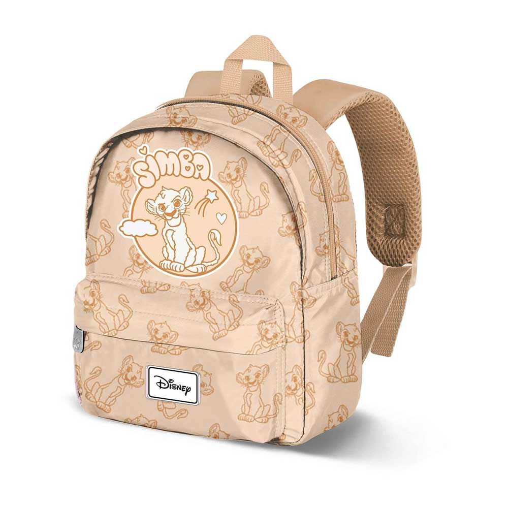 Zaino beige Disney Simba Il Re Leone, misura 27x22x9 cm. Con tasca frontale, spallacci imbottiti e stampa all-over. Ideale per l’asilo.